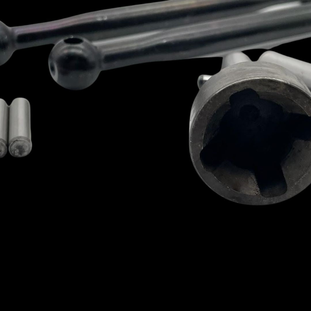 Shafts & cups are made from British grade high tensile heat treated steels. now also having a fully hardend 1/4" pin (6.5mm) for the drive line over the old 5mm version, giving more added contact surface with out sacrificing strength in the cup or dog bone design.