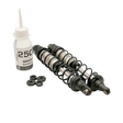 Each shock set comes pre-assembled and ready for oil to be added. For convenience a bottle of silicone shock fluid is included as well as a spare set of shock pistons that you can custom drill your own holes in for fine tuning. Replacement parts including shafts and shock rebuild sets are available separately.