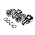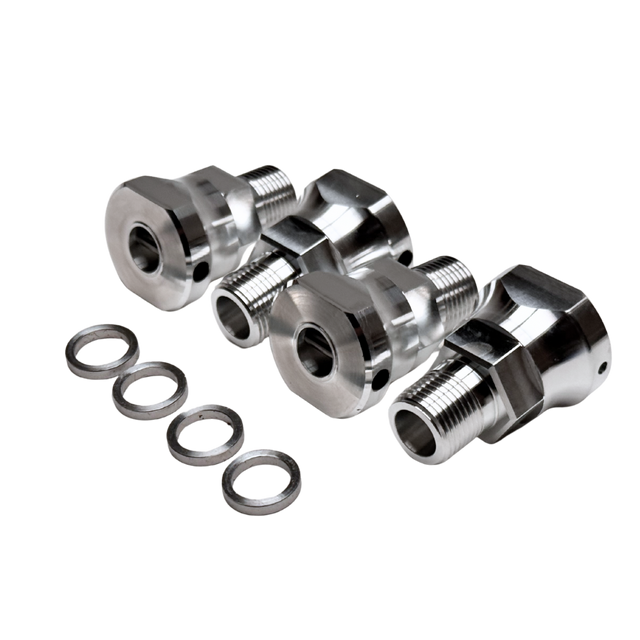 A neat high quality pair of Billet machined wheel extenders to suit all DBXL models running 4mm pins (DBXL 2.0 Gas and Electric). Billet spacer shims are included to stand off from the hubs, works with stock, Taylor upgrade or any other correctly machined aftermarket hub.