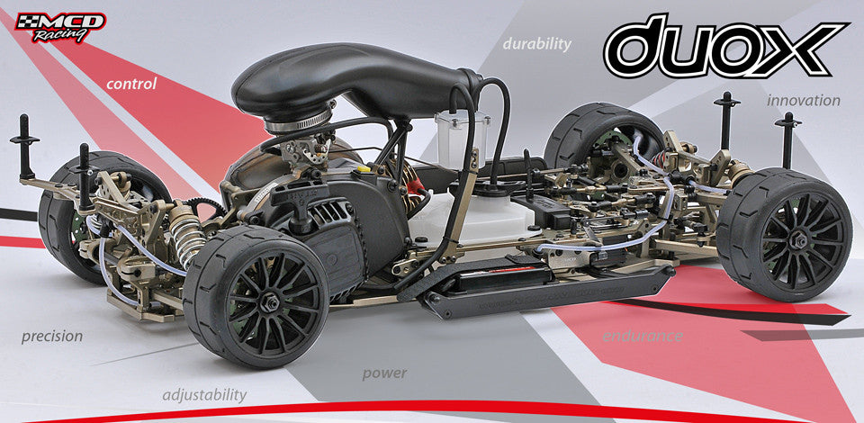 The MCD DUOX is an outcome of their passion to take on a new innovation challenge to create the ultimate 2WD large scale touring race car in the field. While developing the DUOX the main focus was to never compromise on racing capabilities. They wanted you to have the most reliable driving and maintenance experience possible. This version includes the hydraulic differential, airbox, and hydraulic disc brakes.