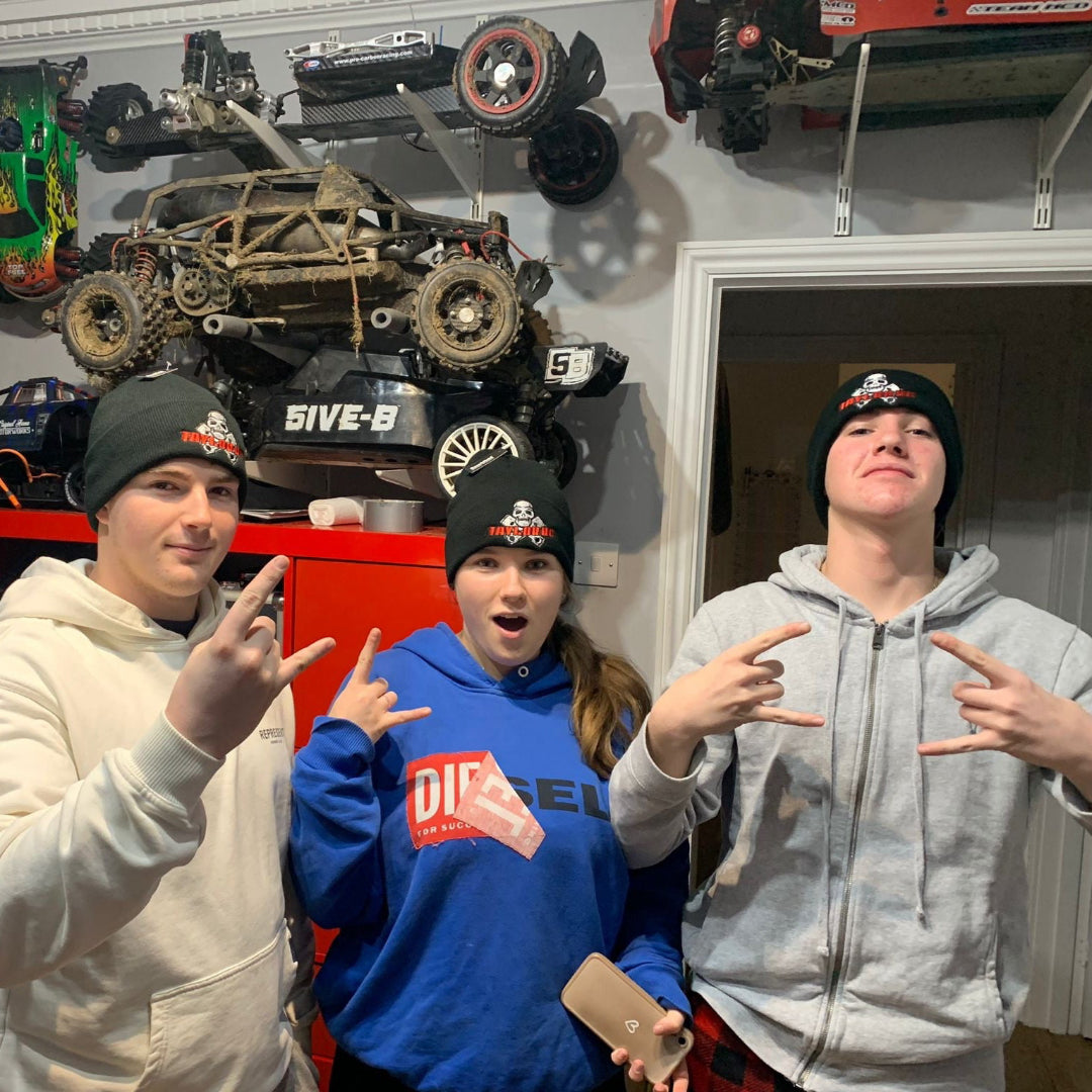 Black beanie with skull and crossbones design and 'Taylor RC' branding.