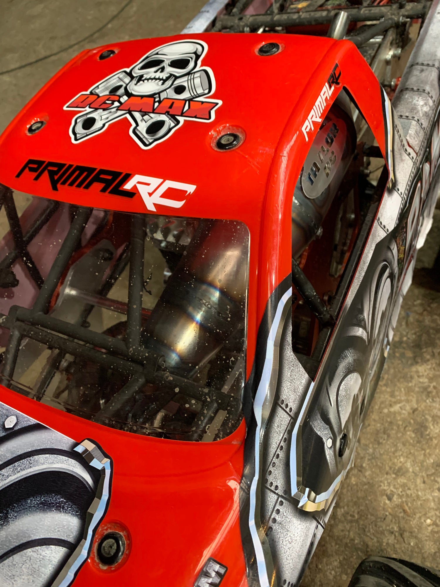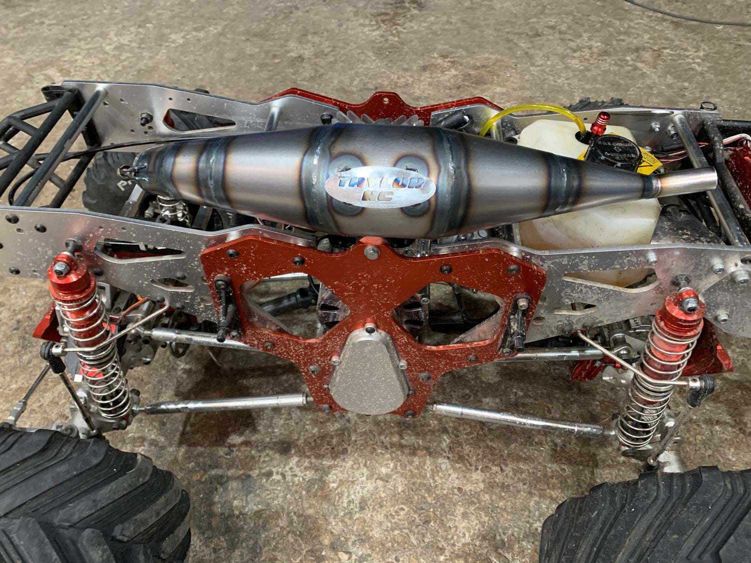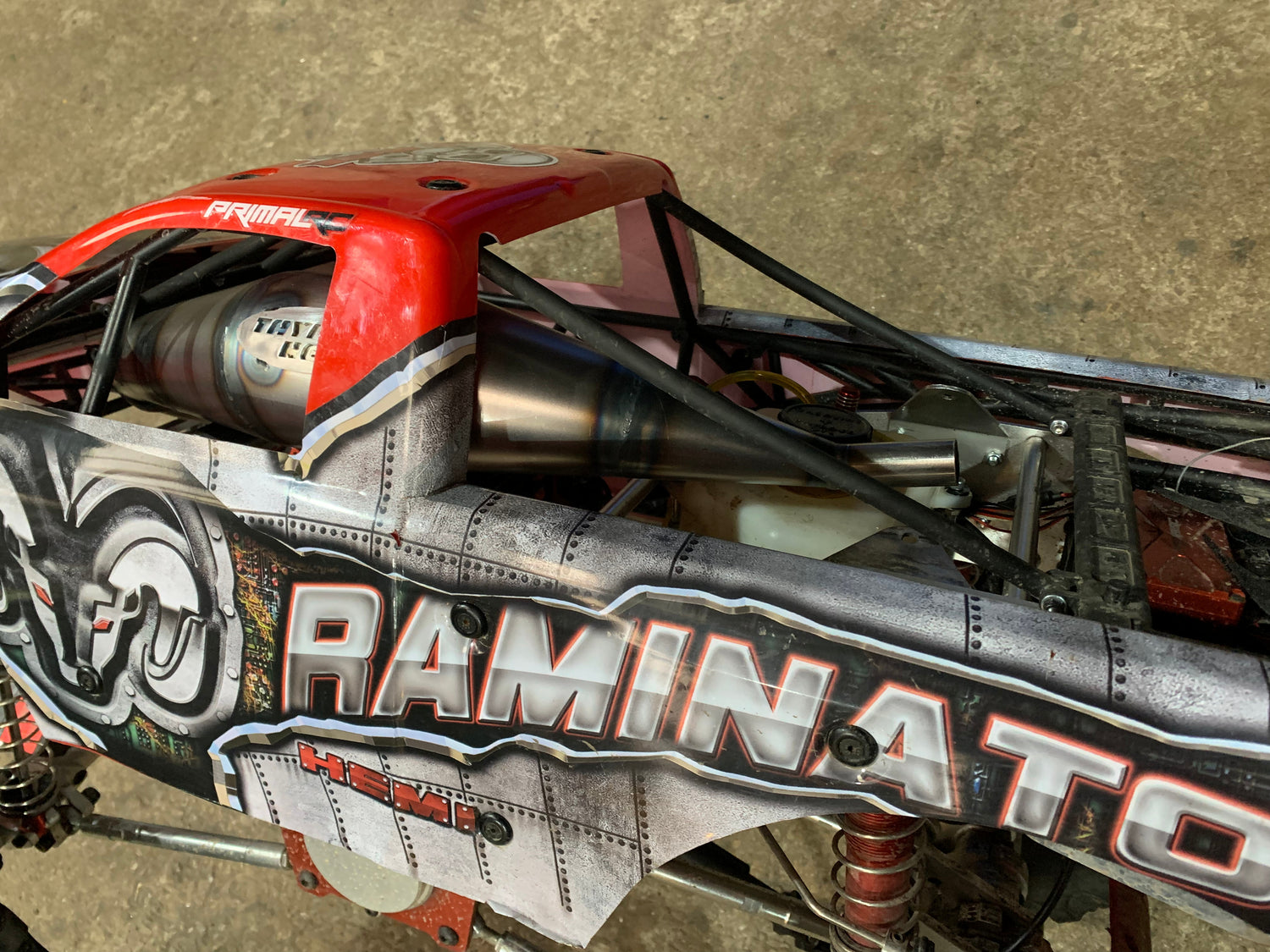 Our new insanely powerful un-silenced Big Bore exhaust pipe for the Primal 1/5 Raminator and Mega Monster Trucks! (will fit the grave digger but cage cutting is involved)