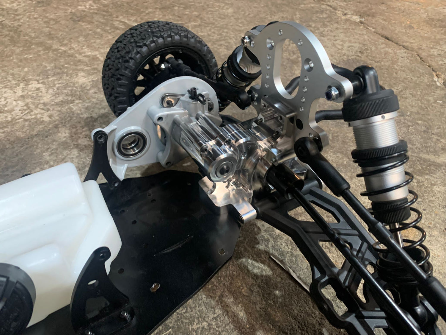 Some pure Taylor innovation here with our new stunning 3pc Gearbox design for the new Kraken Vesla Gas Rigs. (doesnt fit perfectly to the electric versions due to all being 1pc billet up to the back of the gearplate and thus the motor strap doesnt fit and the brushless gear plate is different too.)