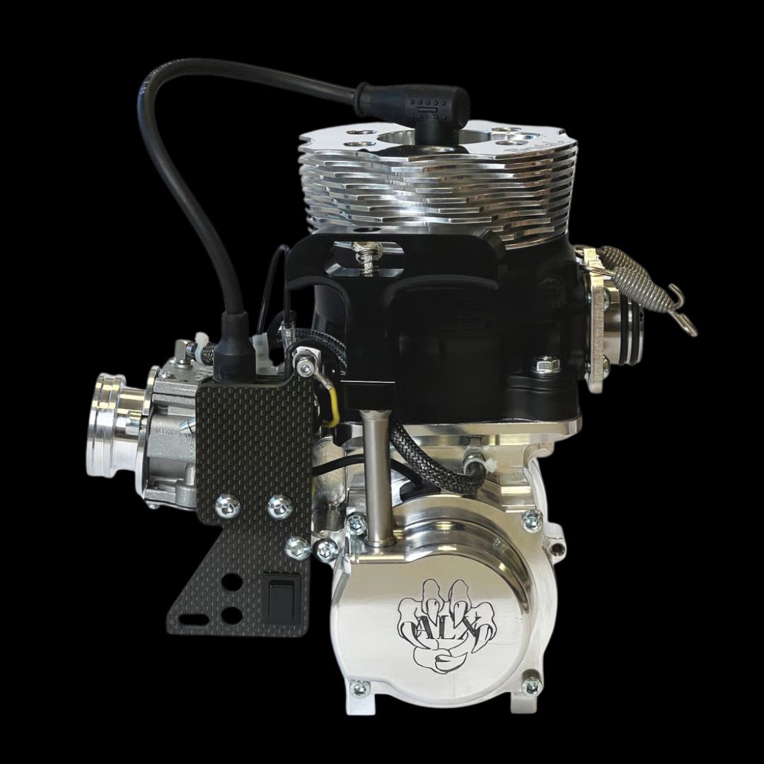 The ALX Brutale 96cc engine has no equal. Taking the 85cc to a new level this all new engine features a lightened crankcase with a new smooth design. A 4mm carbon fiber plate holds the ignition coil is mounted to the case with a secure M6 bolt. The 45mm stroke ALX crank has a 13mm piston pin and a fully machined connecting rod. The Brutale 96 has a flower cooling head to set it apart from others.