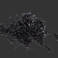 Set of 84 coarse thread screws designed to bite into plastic wheels with superior grip. Compatible with all plastic wheels for the Losi 5IVE, Kraken VEKTA, and HPI Baja 2.5mm metric Allen head screws.